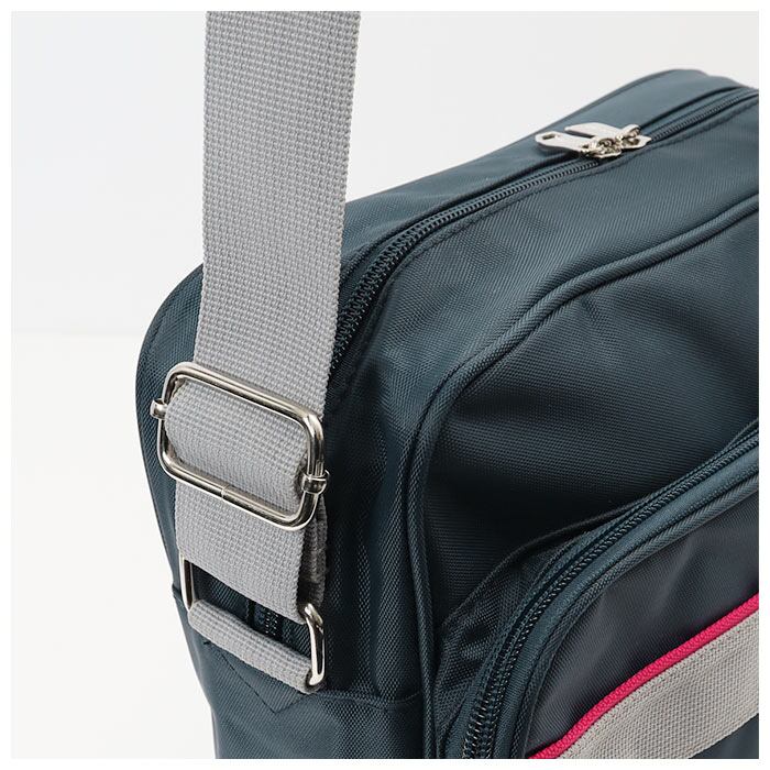 ・ショルダーベルトは長さ調節ができるので、肩掛けも斜め掛けもスタイリング自在。幅広テープ生地を使うことで、肩への負担も優しく軽減。