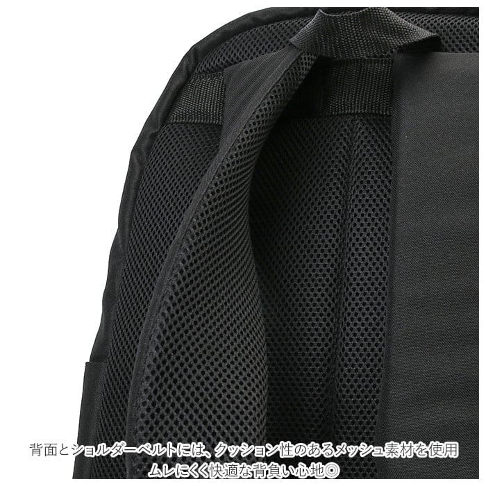 ・背面とショルダーベルトには、クッション性のあるメッシュ素材を使用。ムレにくく快適な背負い心地◎