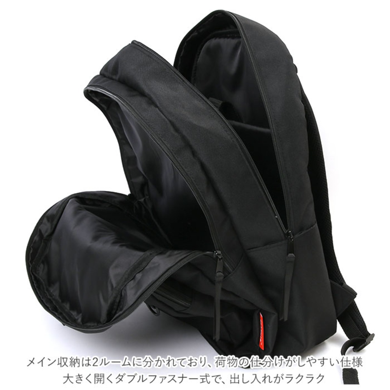 ・メイン収納は2ルームに分かれており、荷物の仕分けがしやすい仕様。大きく開くダブルファスナー式で、出し入れがラクラク。
