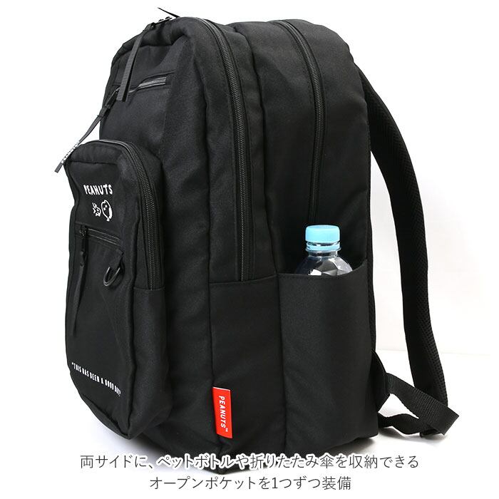 ・両サイドに、ペットボトルや折りたたみ傘を収納できるオープンポケットを1つずつ装備。