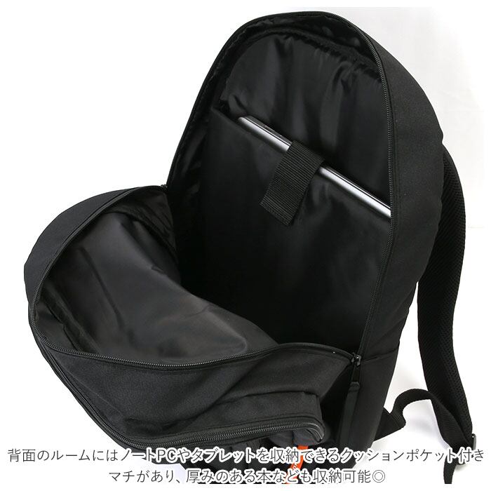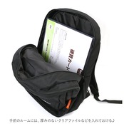 ・背面のルームにはノートPCやタブレットを収納できるクッションポケット付き。マチがあり、テキストなども収納可能◎