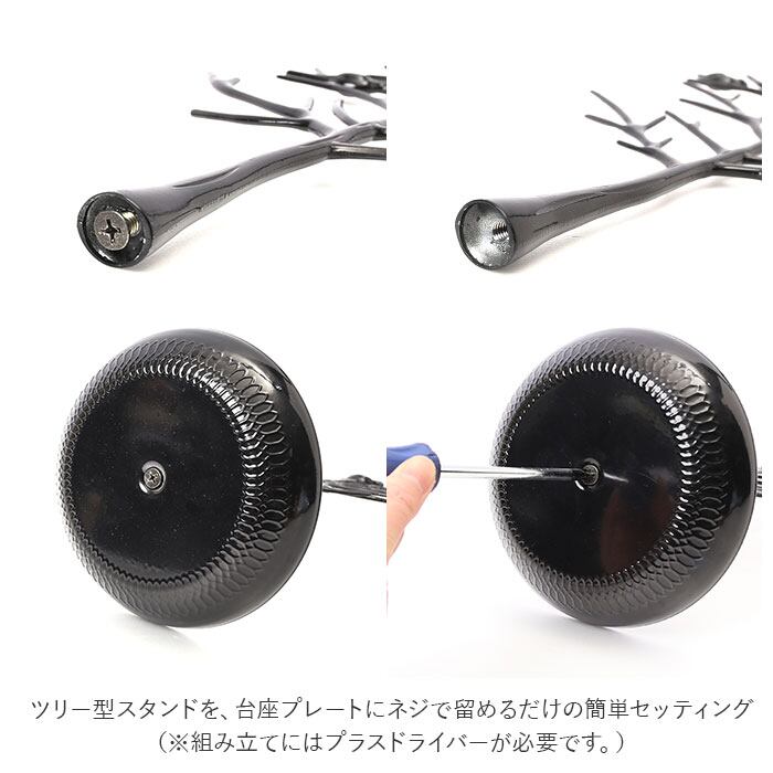 ・ツリー型スタンドを、ソーサー型の台座プレートにネジで留めるだけの簡単セッティング。(※組み立てにはプラスドライバーが必要です。)