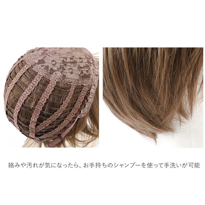 ・ツヤを軽減し人毛に近い質感の耐熱ファイバーを使用することで、ウィッグに見えない自然なスタイルを演出◎コテやヘアアイロンの使用もOK!