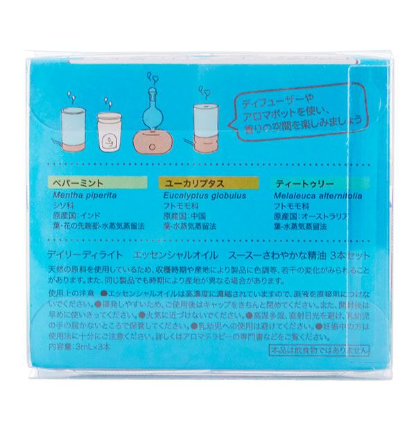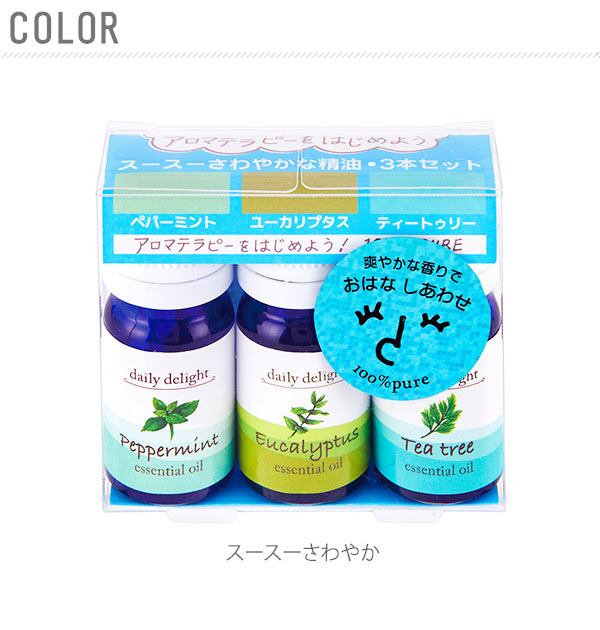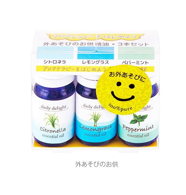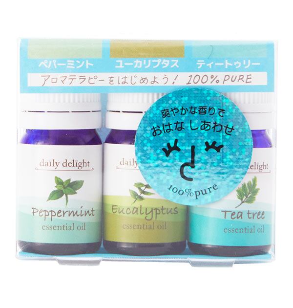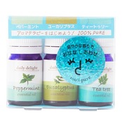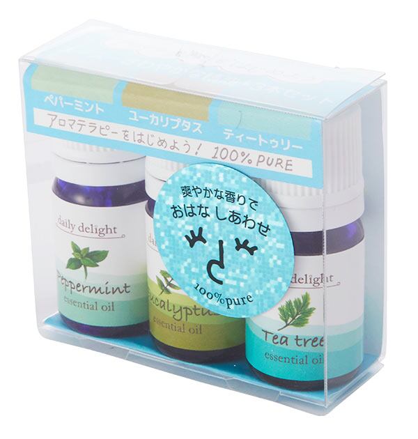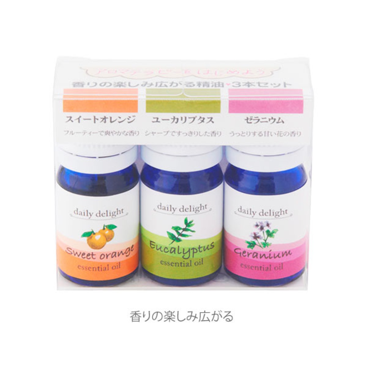 daily delight デイリーディライトのアロマオイル、スターターセットです。セットの種類は、初めての精油、すっきりさわやか、香りの楽しみ、お花と果実のご褒美の4種類。アロマテラピーを初めて楽しみたい方や、気分にあったアロマのセットをお探しの方に。リップバームやねり香水、アロマオイルで人気のデイリーディライトのアロマセットです。