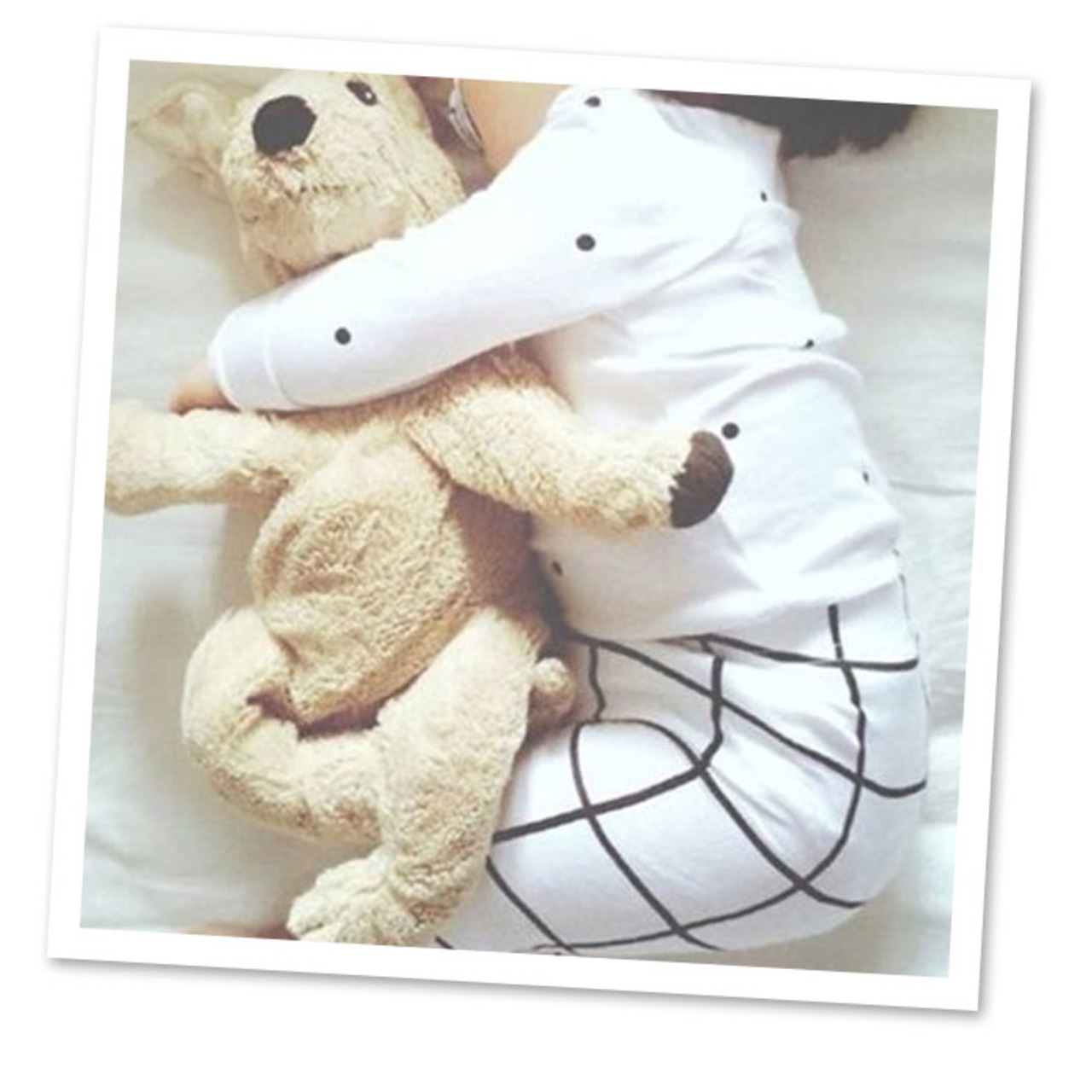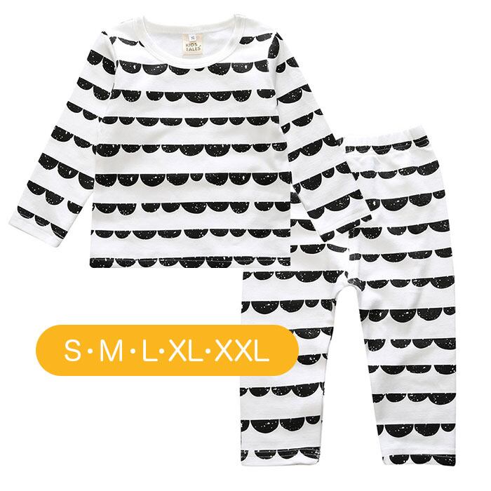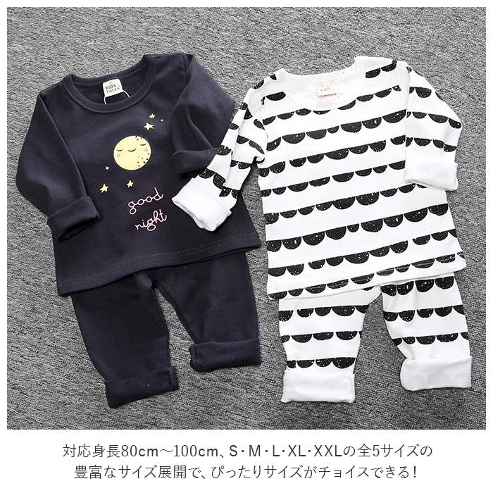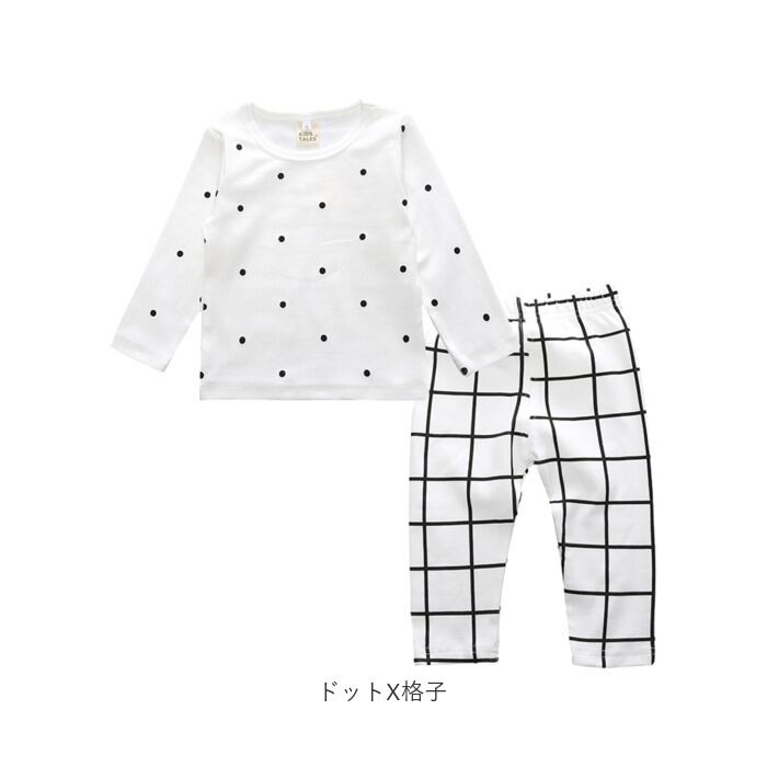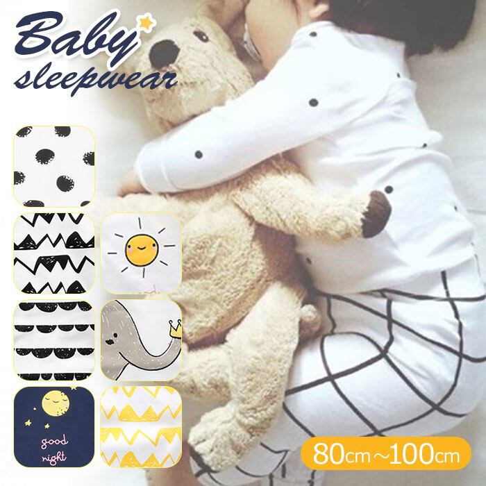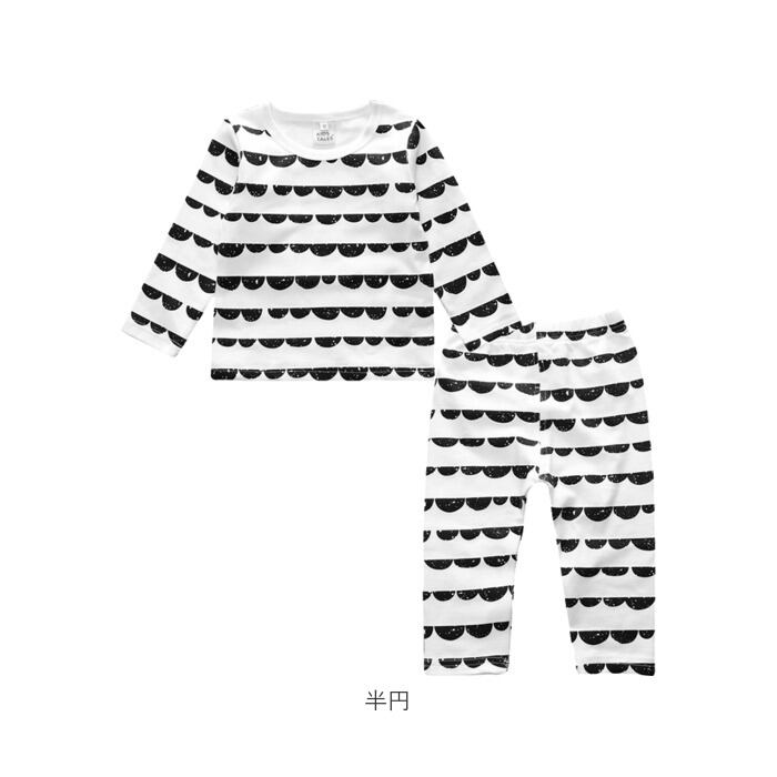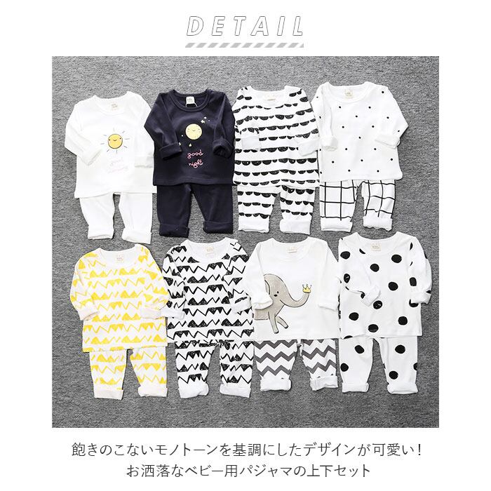 ・飽きのこないモノトーンを基調にしたデザインが可愛い!お洒落なベビー用パジャマの上下セット。