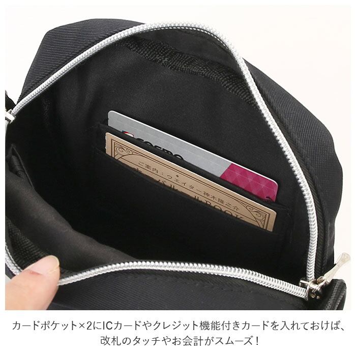 ・カードポケット×2にICカードやクレジット機能付きカードを入れておけば、改札のタッチやお会計がスムーズ!