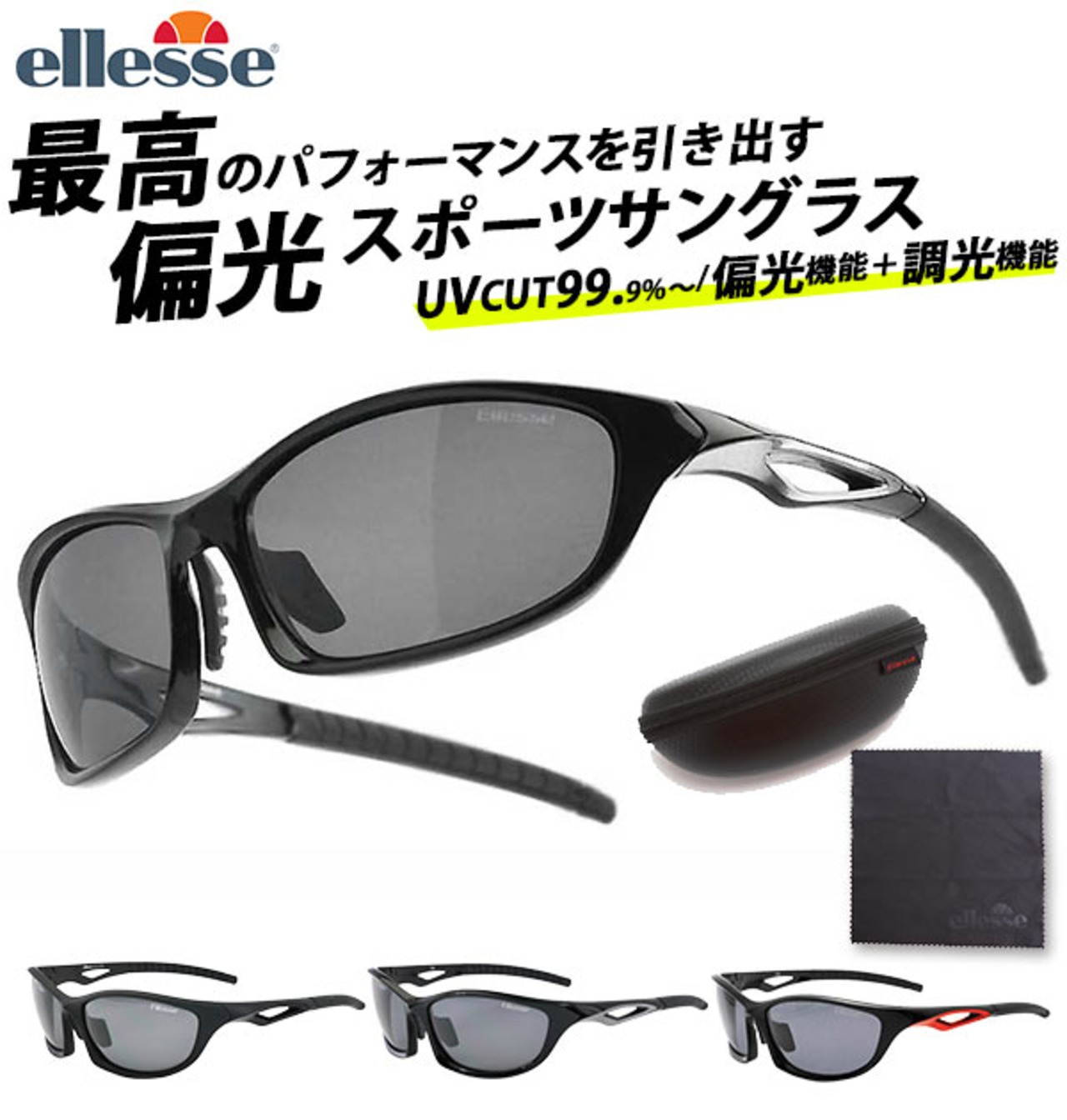 スポーツサングラス ellesse ES-S203-HT ellesse エレッセ 通販 UVカット おしゃれ ケースセット 軽量 軽い 釣り アウトドア 調光 ドライブ サングラス テニス ゴルフ ランニング マラソン かっこいい 眼鏡 めがね ブラックマット シルバー レッド 黒 ブラック 偏光グラス