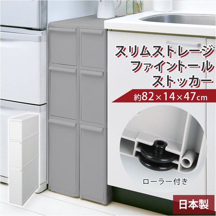 ・横幅約14cmのスリム設計!キッチンやリビング、サニタリースペースなどのちょっとしたすき間で使える収納ストッカー。