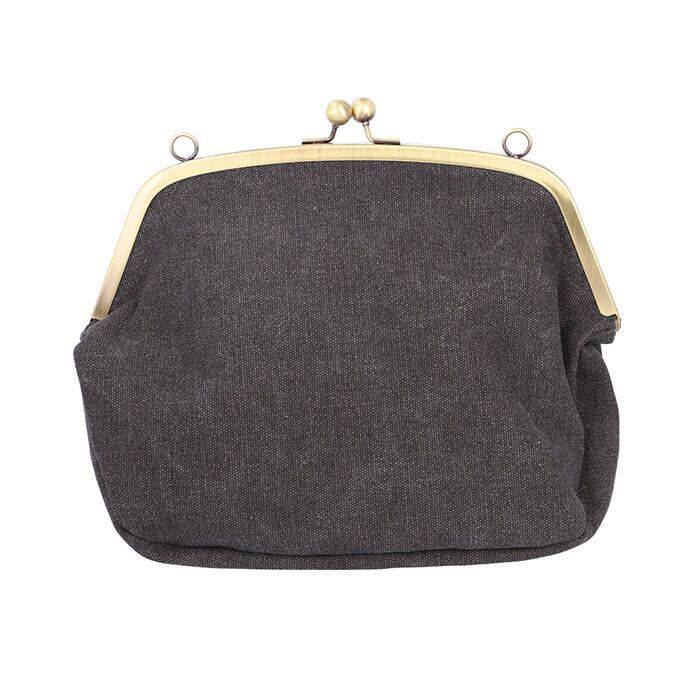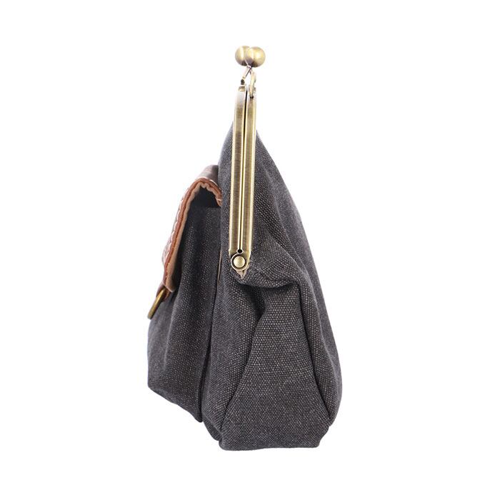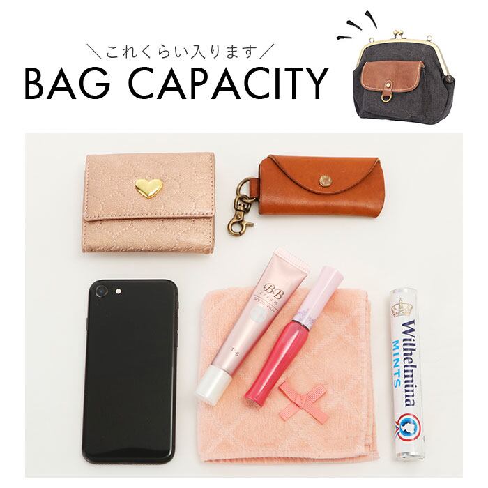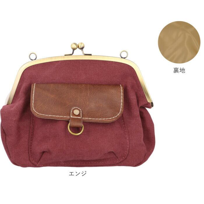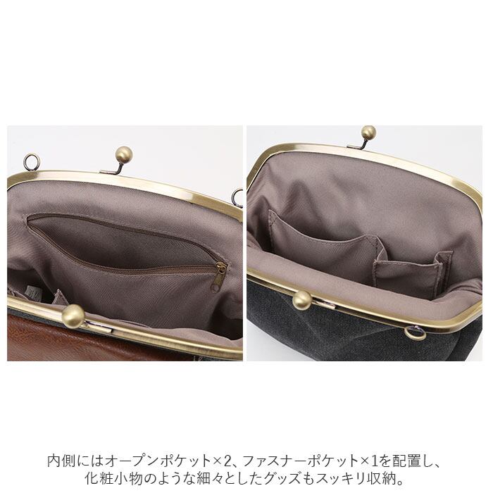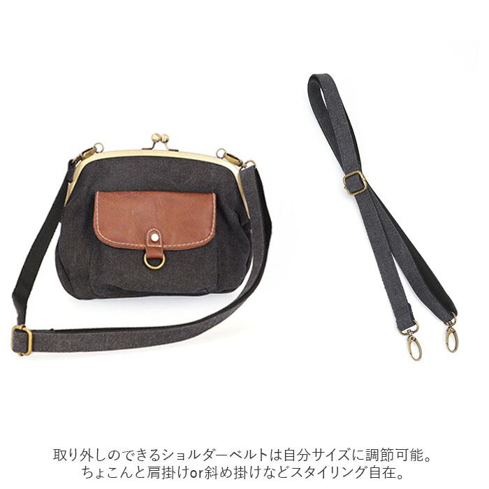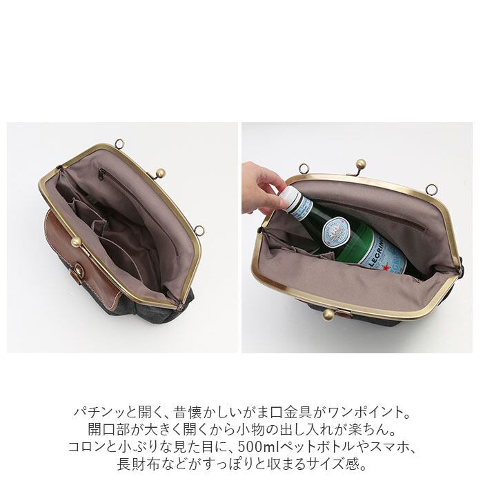 ・パチンッと開く、昔懐かしいがま口金具がワンポイント。開口部が大きく開くから小物の出し入れが楽ちん。
