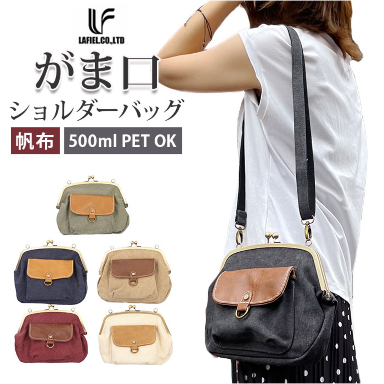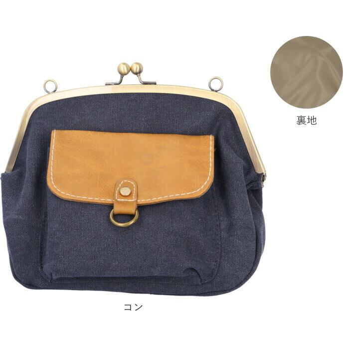 Lafiel ラフィール 帆布 合皮 がま口 ショルダーバッグ