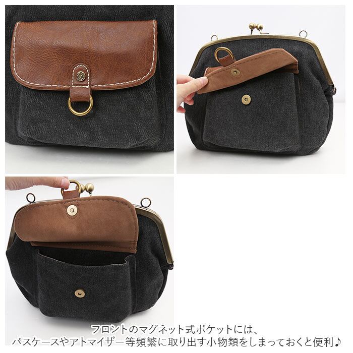 ショルダーバッグ がま口 通販 レディース 斜めがけ 大人 小さめ コンパクト 大容量 おしゃれ シンプル カジュアル ナチュラル 大人 かわいい 旅行 おでかけ サブバッグ 帆布 合皮 異素材 切り替え がま口バッグ がまぐちバッグ がまぐち バッグ レディースバッグ