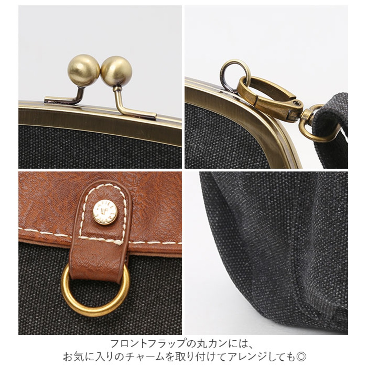・フロントフラップの丸カンには、お気に入りのチャームを取り付けてアレンジしても◎