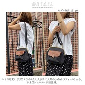 ・ナチュラルな帆布生地をメインに、ブラウンのフェイクレザーをポイント使いした大人可愛いミニショルダーバッグ。