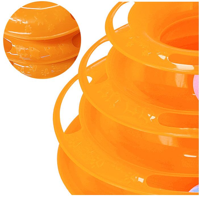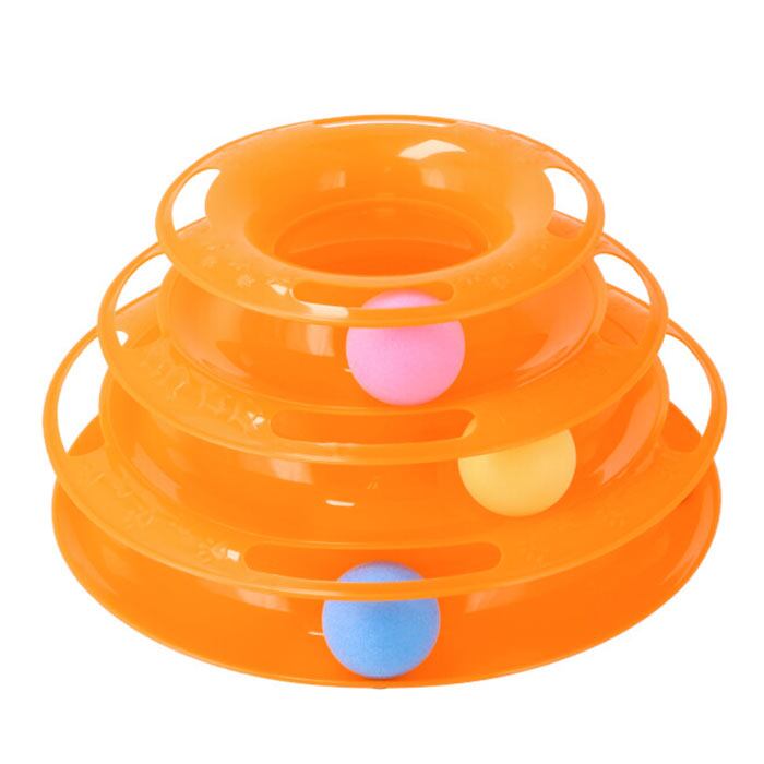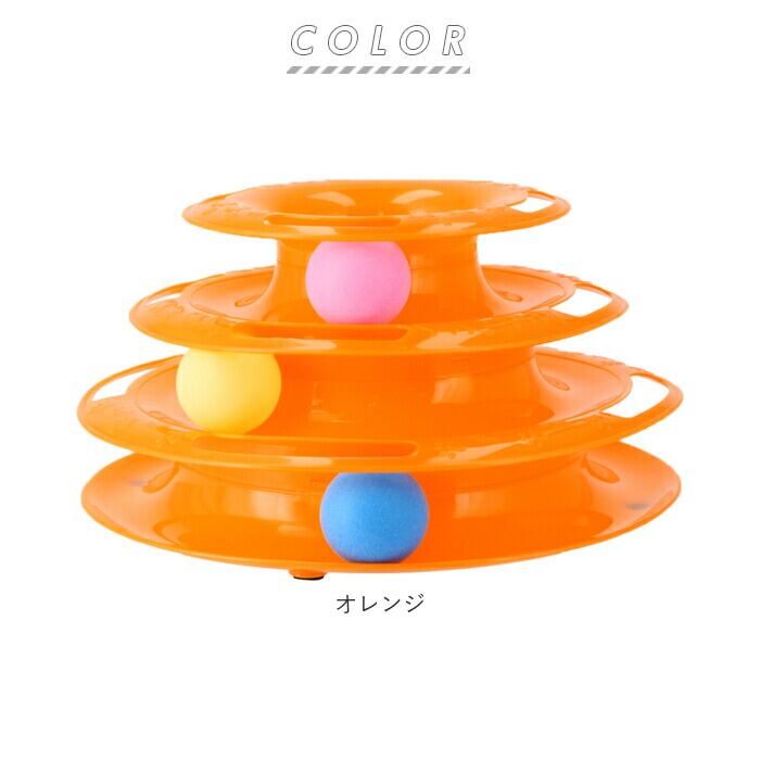 ・3段のタワーに、溝に挟まったカラフルなボールが3つのシンプル形状。ネコちゃんがボールをツンツン、テシッテシッと叩くたびに、ボールのくるくるが止まらない!