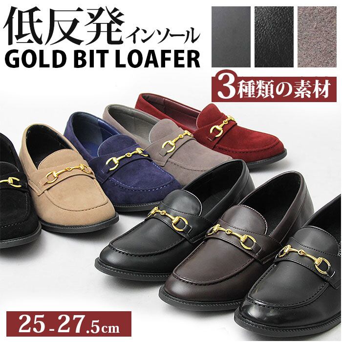 ローファー メンズ おしゃれ 通販 ビットローファー ビット 付き ゴールドビット 飾り付き 革靴 皮靴 ローカット ローヒール glabella グラベラ 合皮 フェイクレザー 高級感 高見え 入学式 卒業式 靴 シューズ メンズシューズ メンズ靴