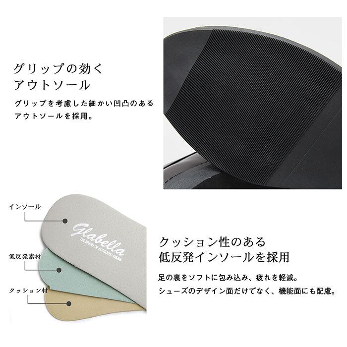 ・さらに低反発インソールとスポンジでクッション性の高いインソール構造を採用し足の疲れを軽減。