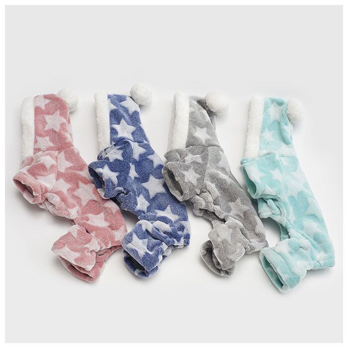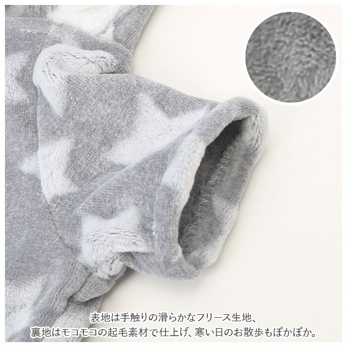 ・表地は手触りの滑らかなフリース生地、裏地はモコモコの起毛素材で仕上げ、しんしんと冷える寒い日のお散歩もぽかぽか。