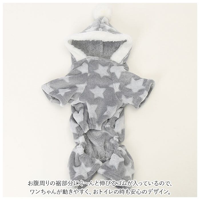 ・お腹周りの裾部分にぐ〜んと伸びるゴムが入っているので、ワンちゃんが動きやすく、おトイレの時も安心のデザイン。