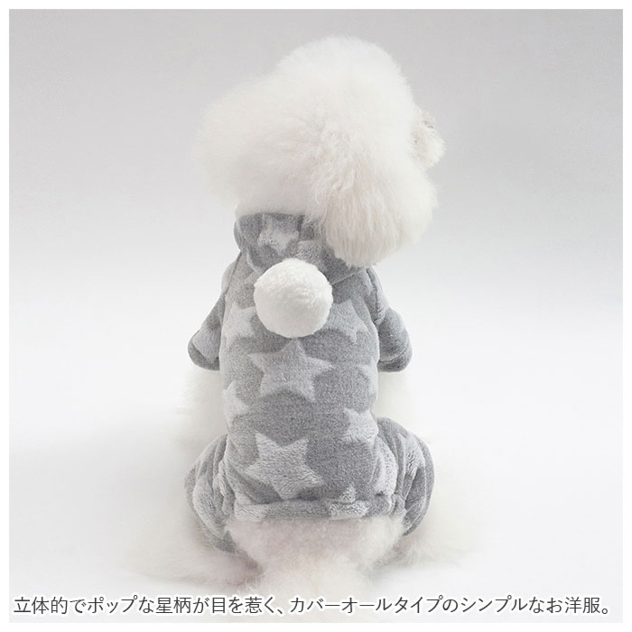 ・立体的でポップな星柄が目を惹く、カバーオールタイプのシンプルなお洋服。