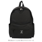 ・フロントにファスナーポケット×1、両サイドにペットボトルを収納できるオープンポケットを1つずつ配置。