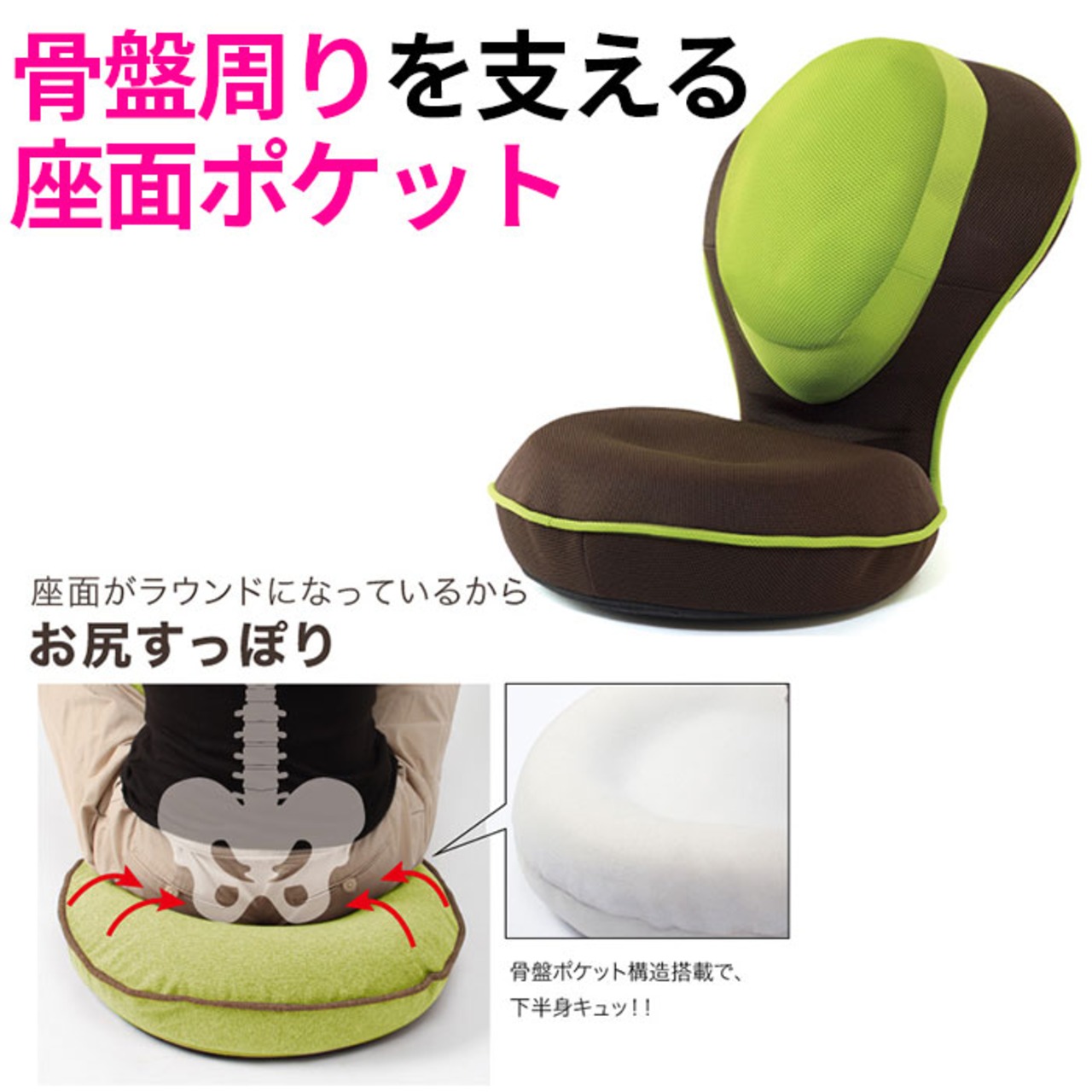 ・身体にぴったりフィットする座面の肉厚クッションには、ふんわりマシュマロ感触の高反発ウレタン素材を採用!より腰にやさしく、骨盤まわりのすっぽり感がGUUUNとアップ!