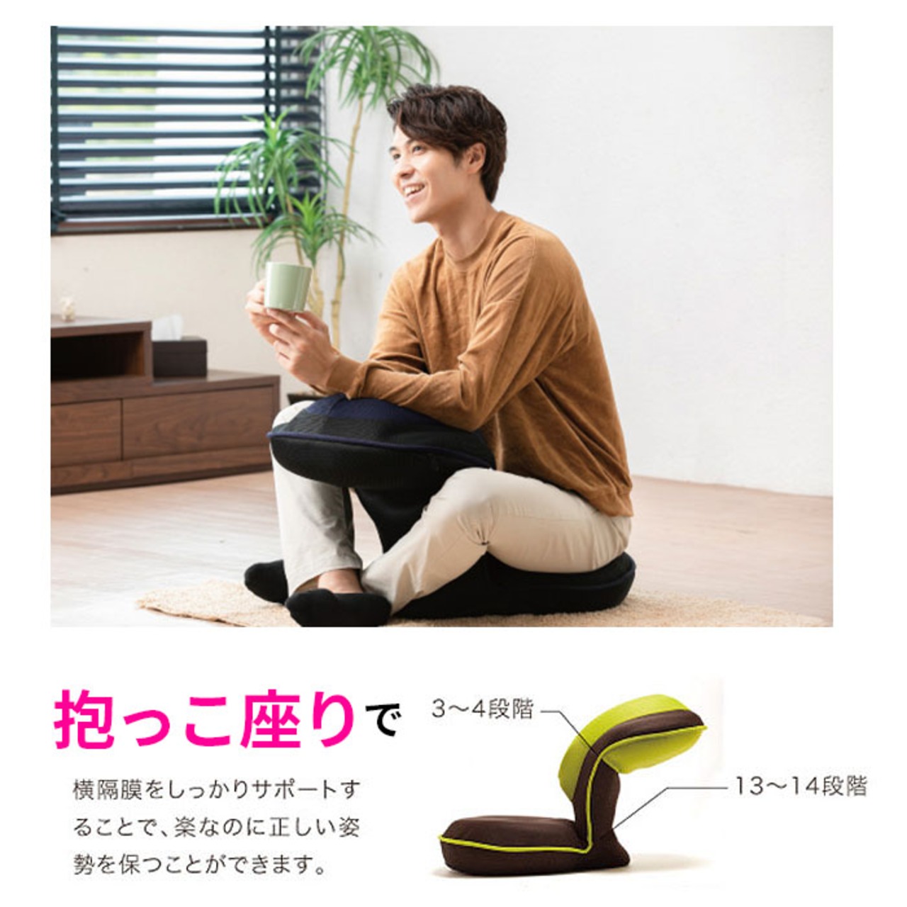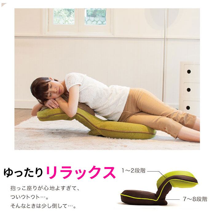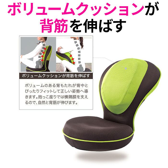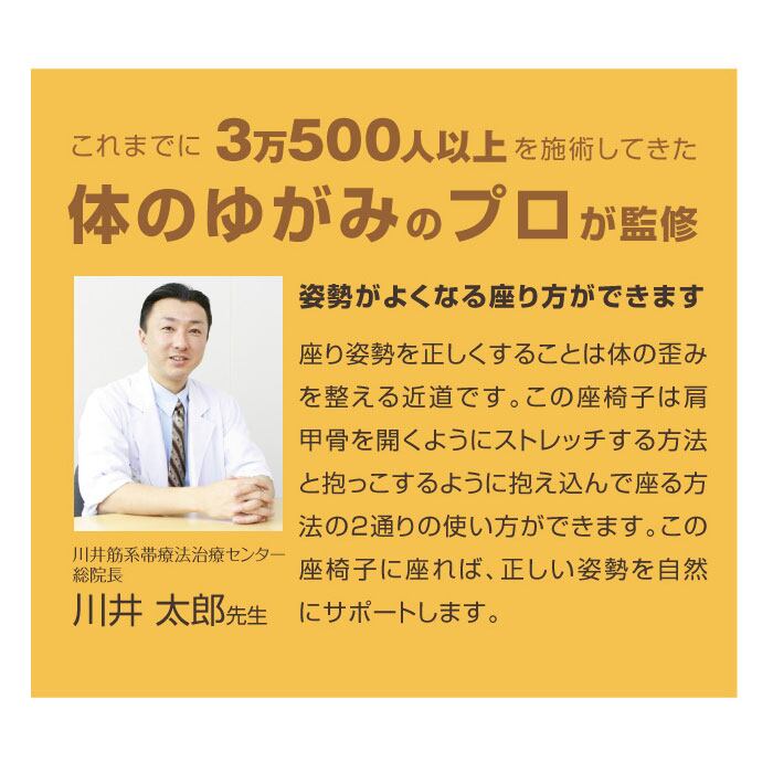 ・通常の座椅子としてはもちろん、背面を前にしてだっこ姿勢にして座ると、横隔膜が伸びて美しい姿勢が保てる!