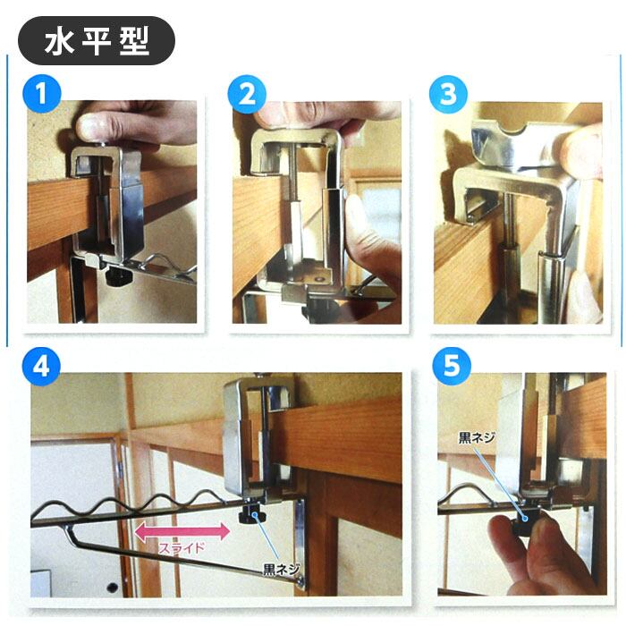 ・洋服の収納場所に困っている方必見!和室の鴨居や桟など、幅最小19mmから最大42mmまでの建具を挟んで取り付けれるお役立ちアイテム。