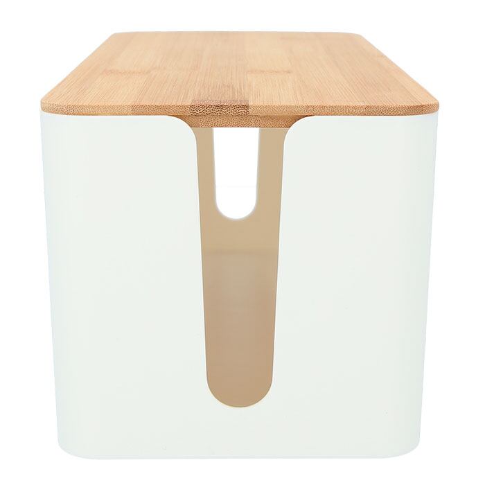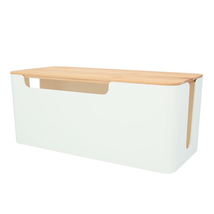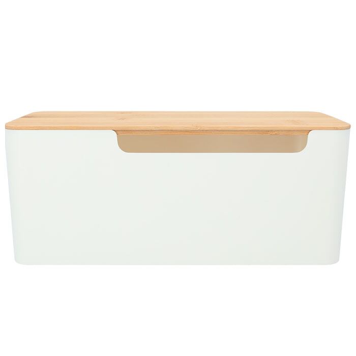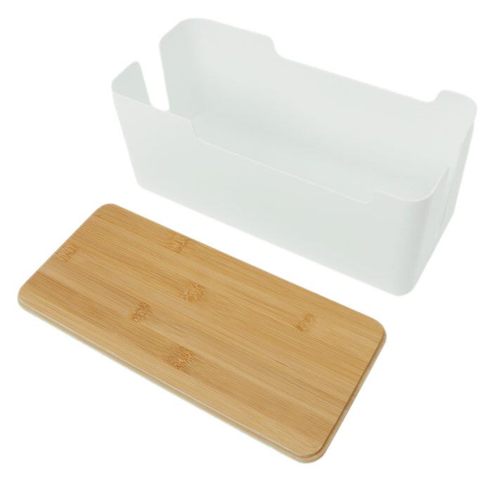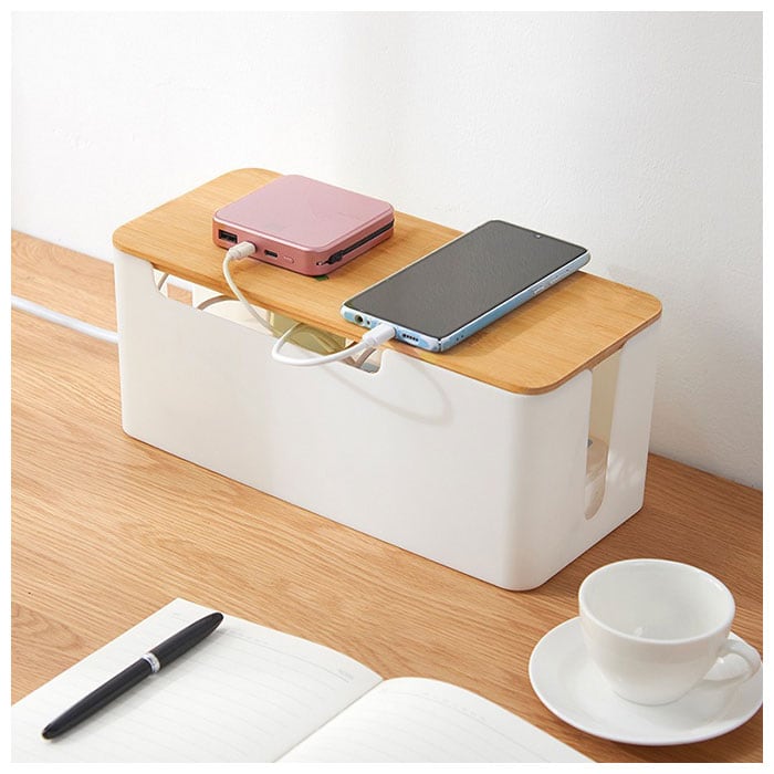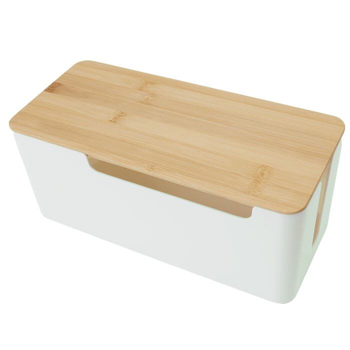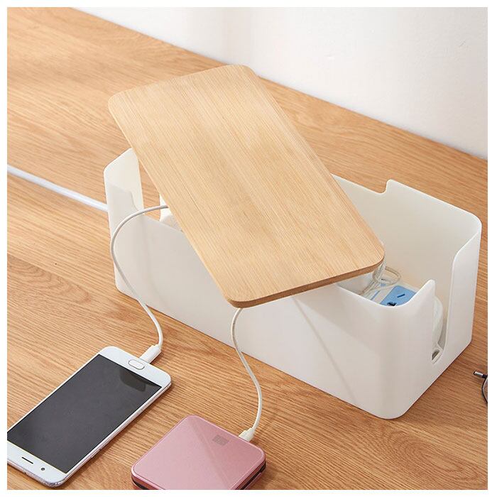 ・ナチュラルな木製のフタと清潔感のあるホワイトのボックスで、ゴチャゴチャとしてしまいがちな配線を上手に目隠し!すっきりと落ち着いたインテリアに。
