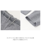 ・ロングパンツは、締めつけ感のないウエストゴム仕様。内紐でサイズ調節もラクチン。