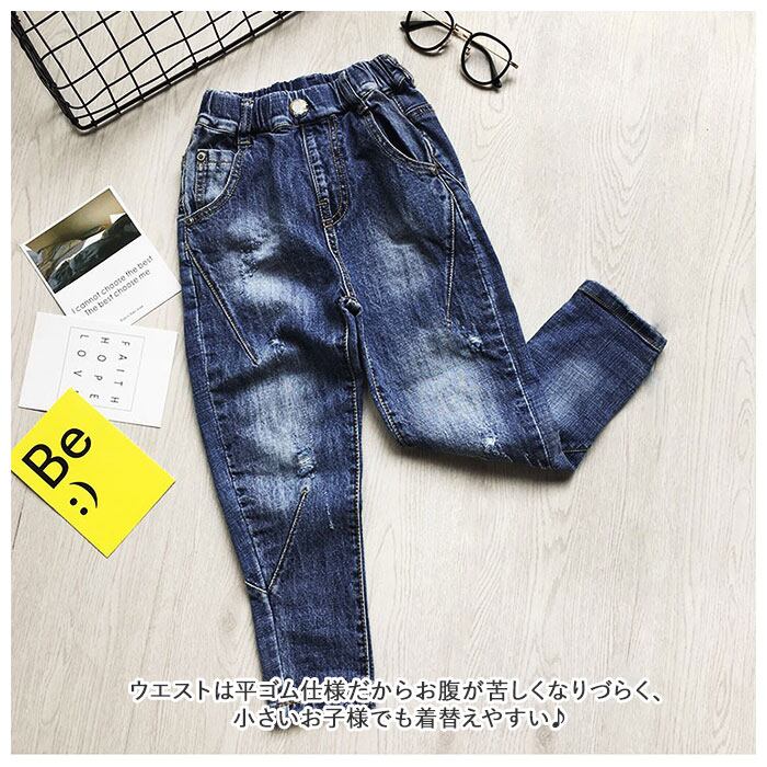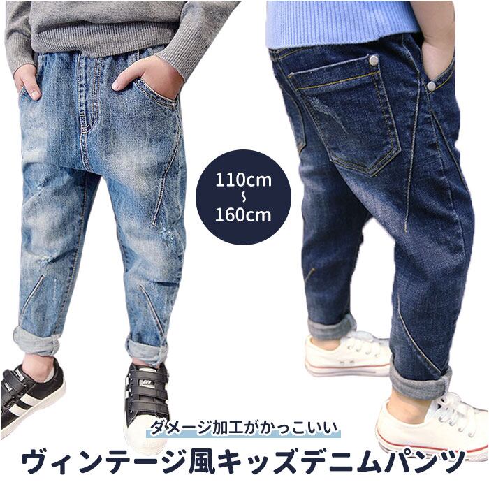 キッズ パンツ デニム 通販 ヴィンテージ ダメージ ストレッチ ジーパン 子供パンツ 男の子 女の子 小学生 子供服 ウエスト ゴム ダンス 衣装 おしゃれ かわいい