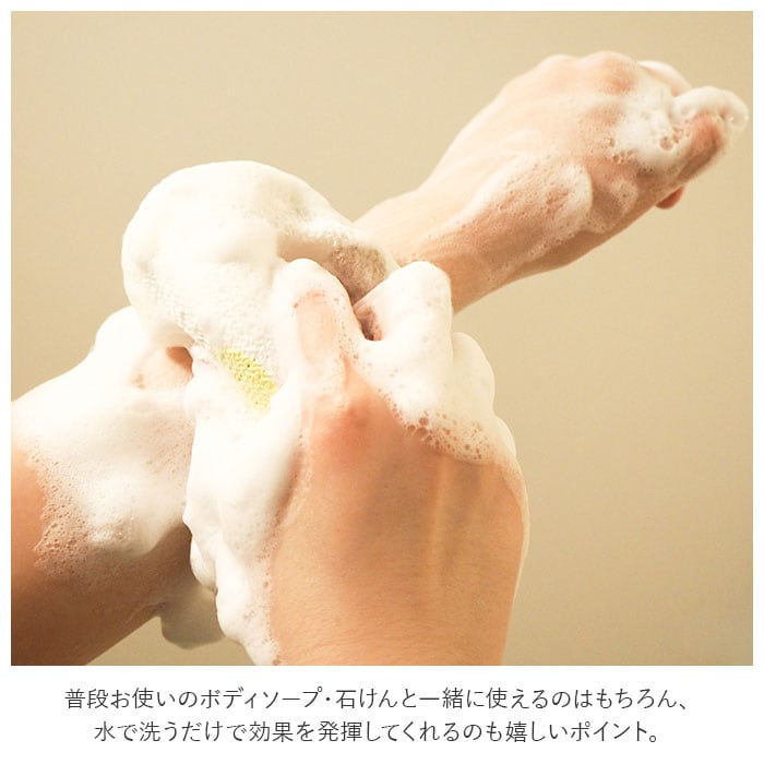 ・普段お使いのボディソープ・石けんと一緒に使えるのはもちろん、水で洗うだけで効果を発揮してくれるのも嬉しいポイント。