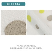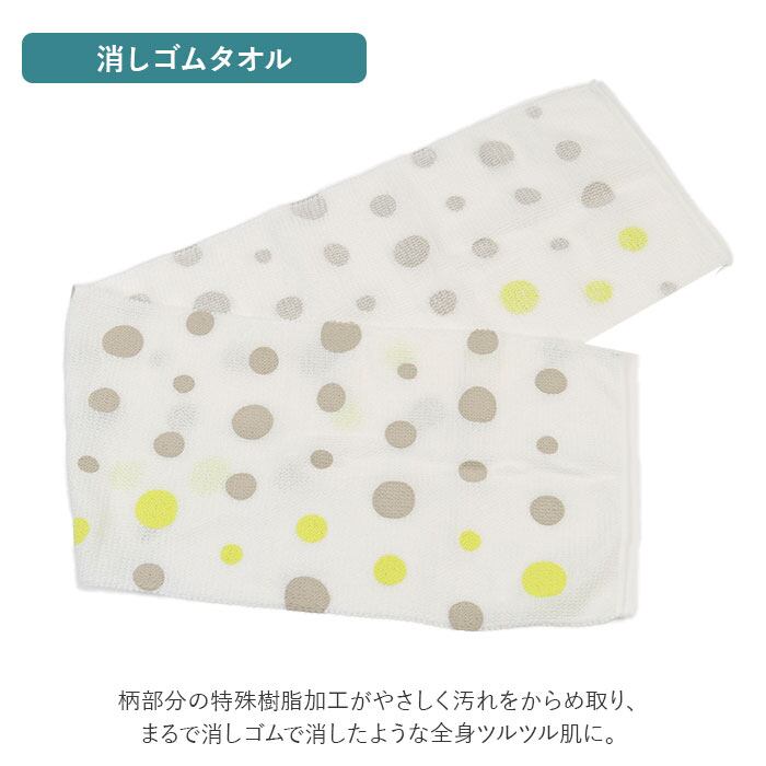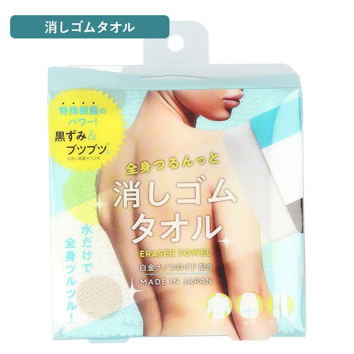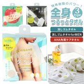 ・タオルの表面に施された特殊樹脂加工で、背中、お尻、ひじ、ひざなど、全身の気になる黒ずみやブツブツ(※)をしっかりケア。(※古い角質やうぶ毛のこと)