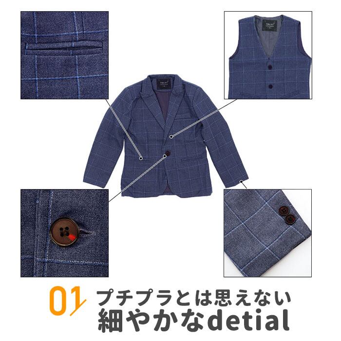 ・入園式、入学式、七五三、結婚式をスタイリッシュにカッコよく決める!男の子用スーツ&ベスト&パンツスタイルのフォーマルセット♪