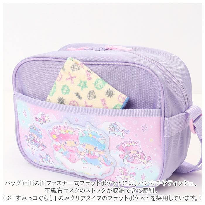 ・バッグ正面の面ファスナー式フラットポケットには、ハンカチやティッシュ、不織布マスクのストックが収納できて便利。(※「すみっコぐらし」のみクリアタイプのフラットポケットを採用しています。)