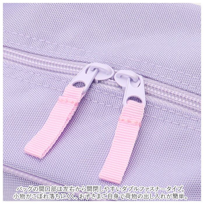 ・バッグの開口部は左右から開閉しやすいダブルファスナータイプ。小物がこぼれ落ちにくく、お子さまご自身で荷物の出し入れが簡単。