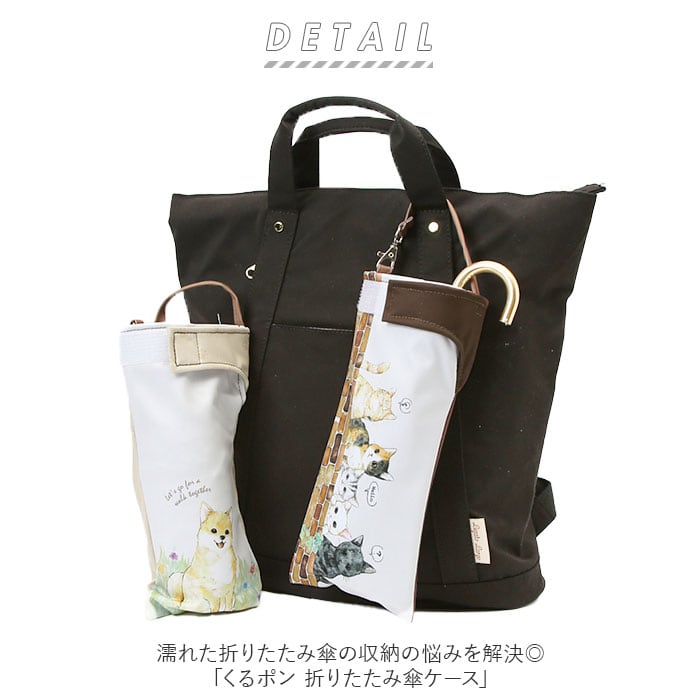 ・可愛い動物のイラストが可愛い♪水や水滴に悩まず収納できる「くるポン 折りたたみ傘ケース」。