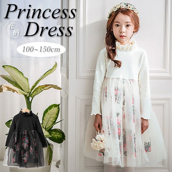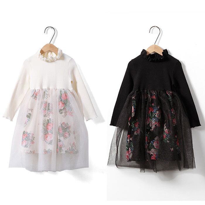 ・花柄の生地に柔らかいチュールが付いていて女の子らしさがあふれるスカート部分。