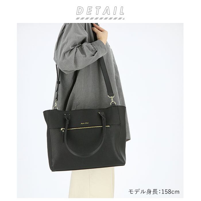 ・シボ感のあるフェイクレザーを使用し、ゴールドの金具使いが上品な印象を演出してくれるトートバッグ。