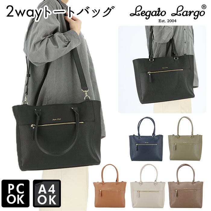 ・見た目も機能も欲張りたい♪Legato Largo(レガートラルゴ)から、PC収納もできる「フェイクレザー 2WAYトートバッグ」が登場。