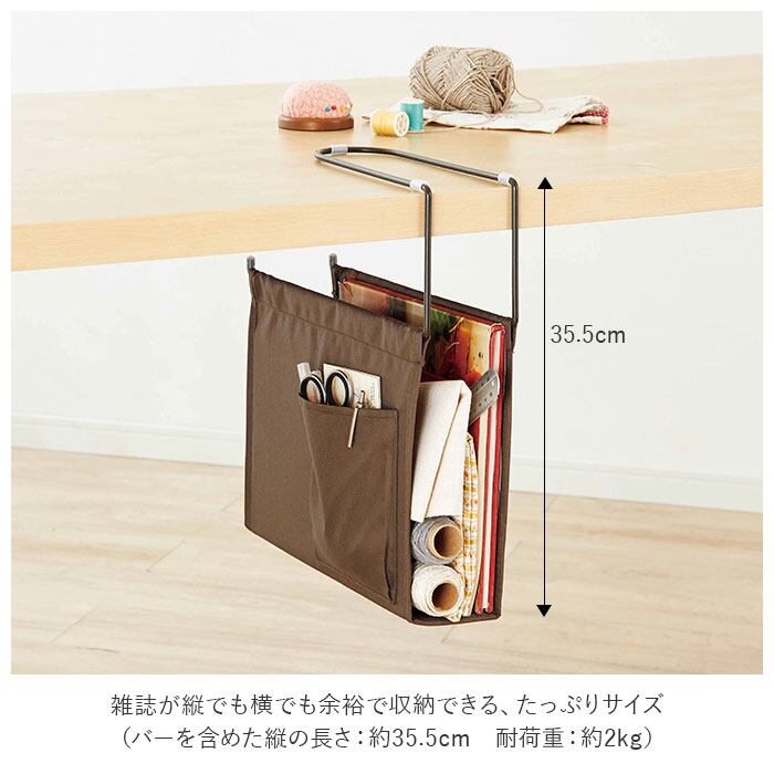 ・雑誌が縦でも横でも余裕で収納できる、たっぷりサイズ。(縦の長さ:約35.5cm。耐荷重:約2kg。)