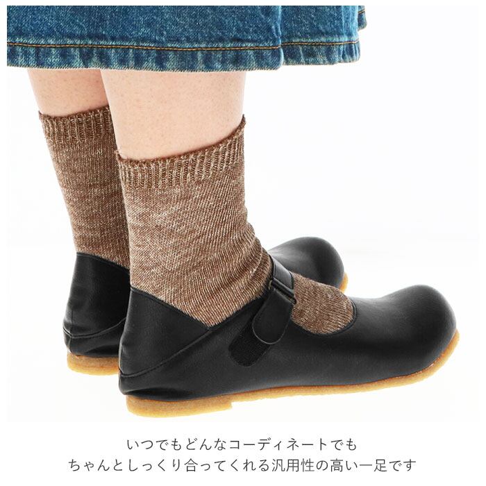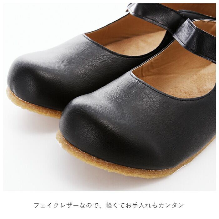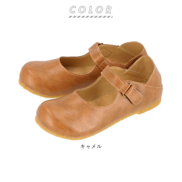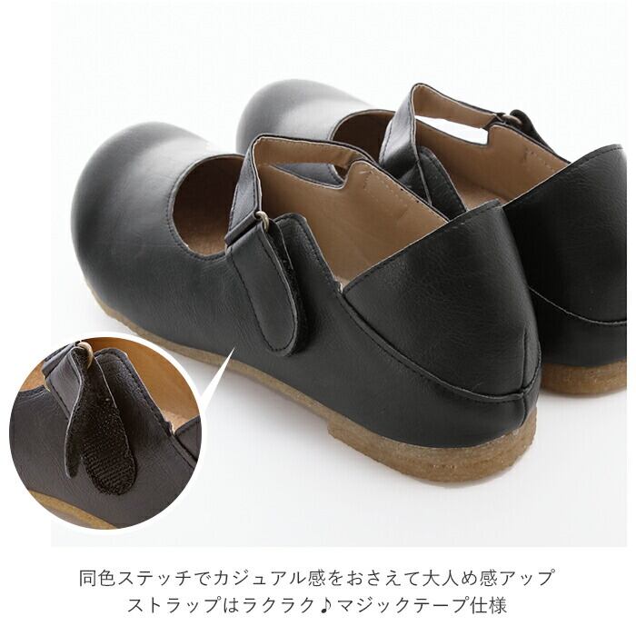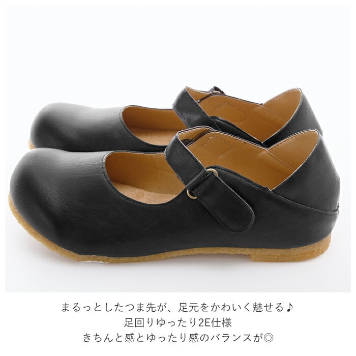 ・まるっとしたつま先が、足元をかわいく魅せる♪フェイクレザーなので、軽くてお手入れもカンタン。