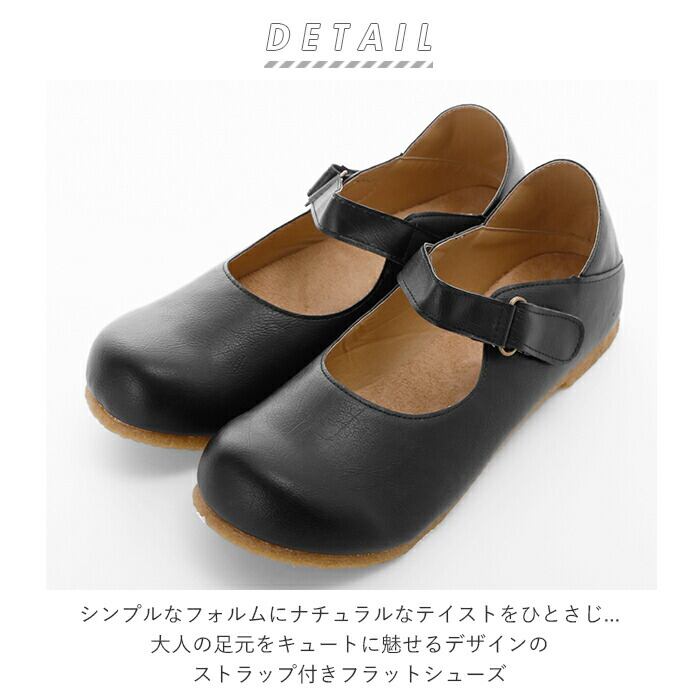 ・シンプルなフォルムにナチュラルなテイストをひとさじ。大人の足元をキュートに魅せるデザインのストラップ付きフラットシューズ。