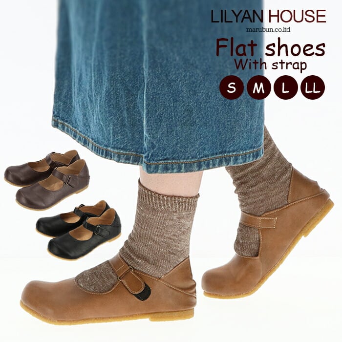 フラットシューズ レディース 通販 スリッポン おしゃれ ストラップ 歩きやすい 履きやすい 滑りにくい 軽量 軽い ラウンドトゥ カジュアル ナチュラル シンプル LILYAN HOUSE リリアンハウス 冬 秋冬 夏 春夏 オールシーズン 靴