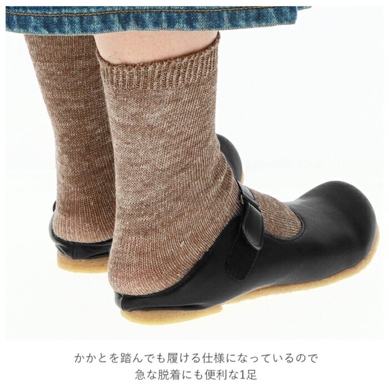 ・かかとを踏んでも履ける仕様になっているので、急な脱着にも便利な1足。