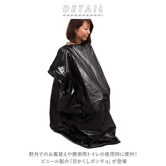・野外でのお着替えや携帯用トイレの使用時に便利!ビニール製の「目かくしポンチョ」が登場。