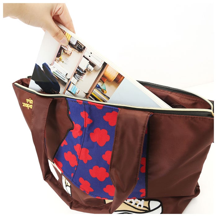 ・メイン収納開口部はファスナーで開閉するタイプなので、中身が飛び出さず安心♪A4サイズだから荷物もたくさん入り、小物を仕分けて入れられるオープンポケット×2も装備。