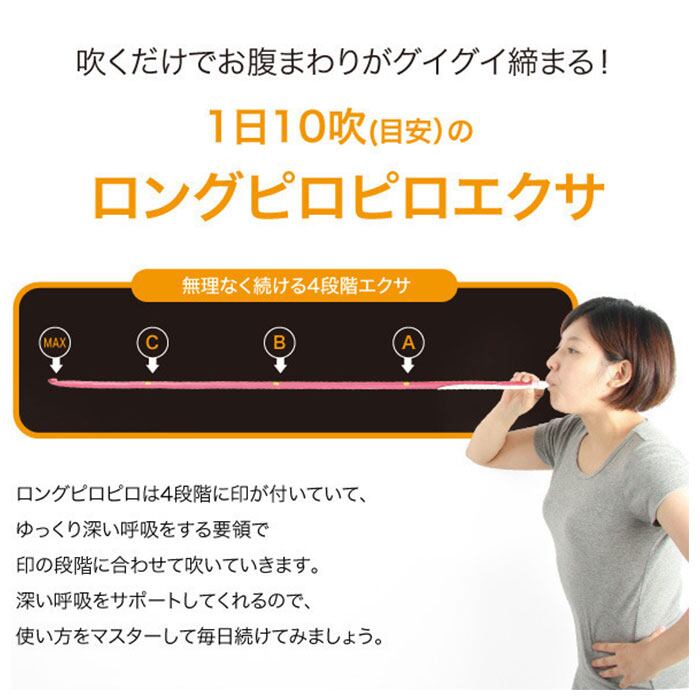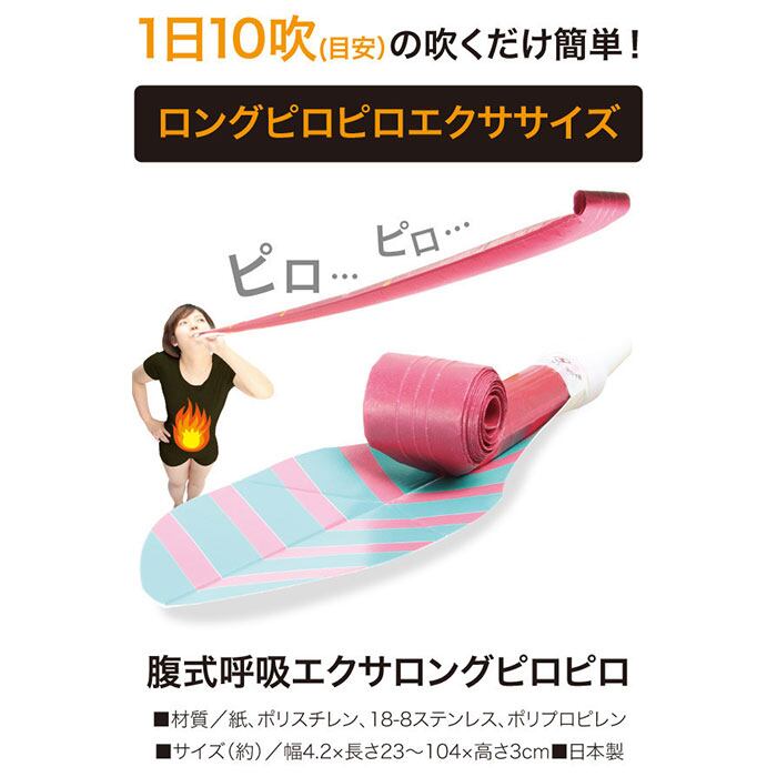 ・ロングピロピロを吹くだけで、自然に腹式呼吸をマスターできる!毎日楽しく手軽に続けられて、3日坊主にならない♪