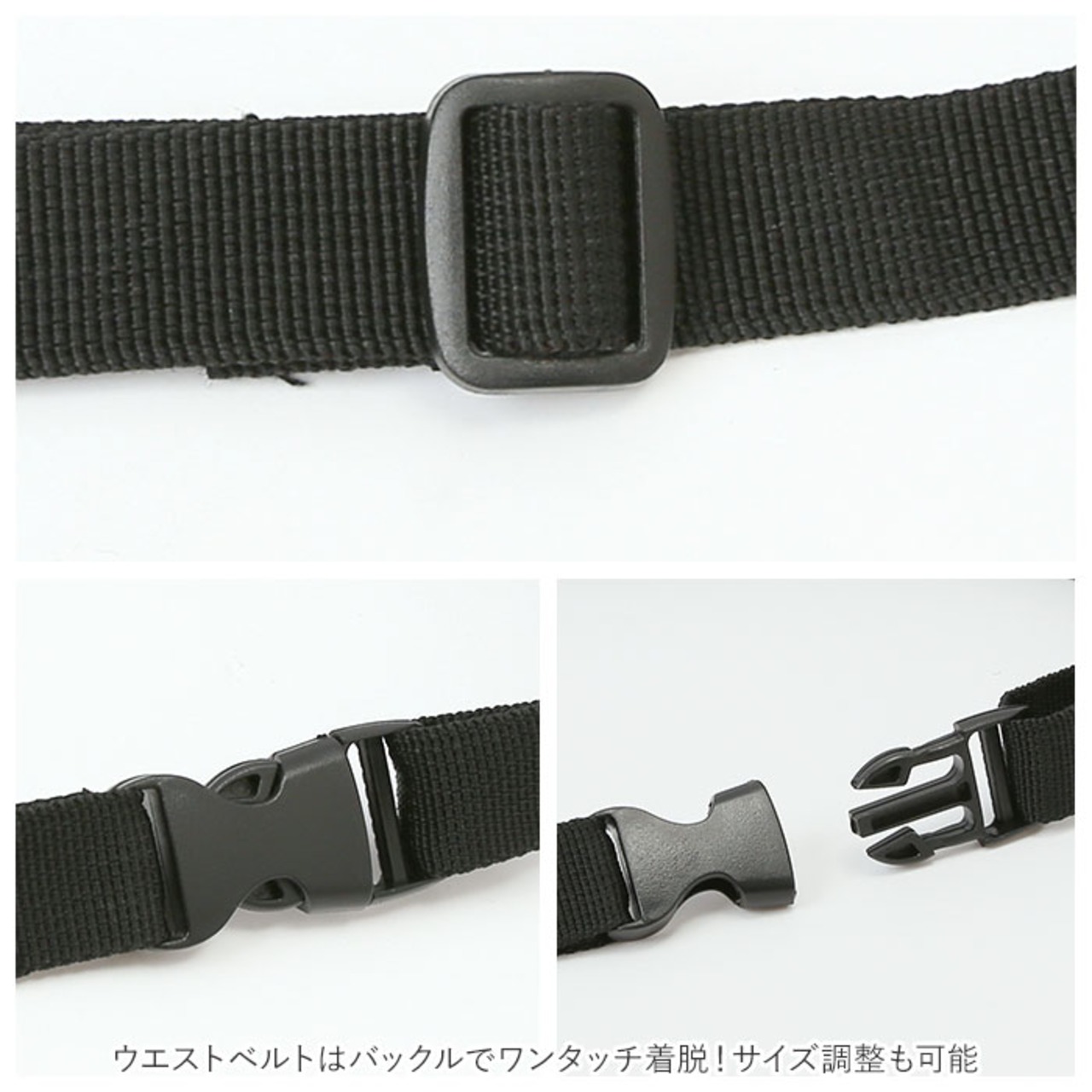 ・ウエストベルトはバックルでワンタッチ着脱!サイズ調整も可能。