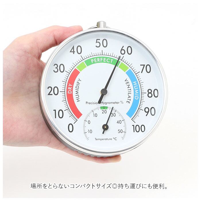 ・温度と湿度がひと目でわかる、読みやすい文字盤デザイン。