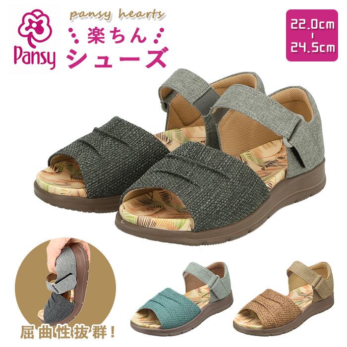 パンジー サンダル 通販 レディース pansy 靴 1420 楽ちんシューズ pansy hearts パンジー ハーツ 履きやすい マジックテープ 夏 春夏 歩きやすい 疲れにくい ストラップ フラットサンダル ファッションサンダル シューズ レディースシューズ